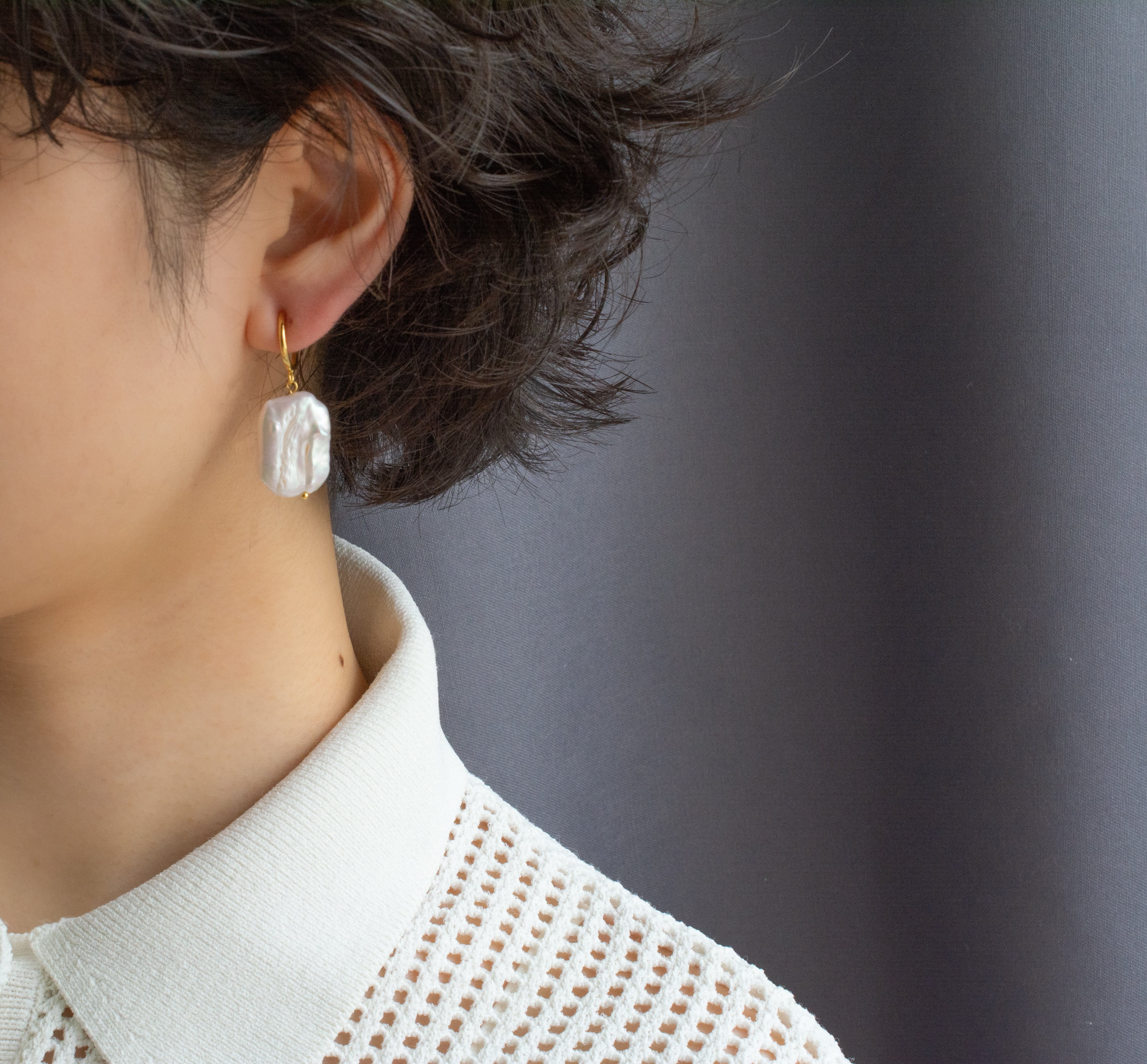 パールそれぞれの違いを楽しめる、存在感があるピイヤリングです。